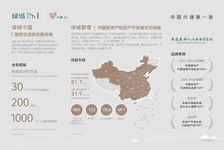 绿城管理控股有限公司及其附属公司(合称“绿城管理”),是中国房地产轻资产开发模式的先行者、引领者。绿城管理成立于2010年,是绿城中国全资子公司,2020年7月,香港联交所主板上市(股票代码9979.HK),成为中国代建第一股。