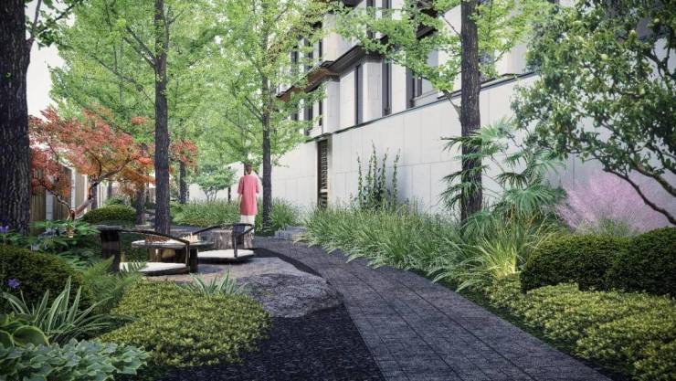 入户水院、地上庭院、空中庭院、地下庭院,层层有院,处处有景,演绎宋式雅致和生活情趣。