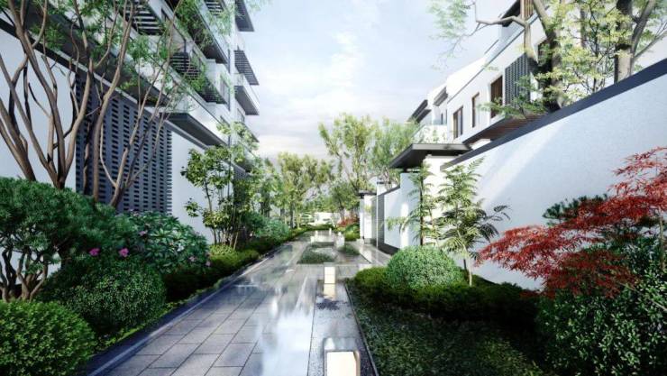 设计东南亚风格小院别墅,同时融合江浙民居的中式元素。家家户户都有自己的院子,最小花园面积均在60方以上。地理资源优越,是杭州区域内少有的坡地排屋;项目依山而建,每一户都存在不同的地势高差,视野极佳,真正意义上做到了开门见山,远眺望水。
