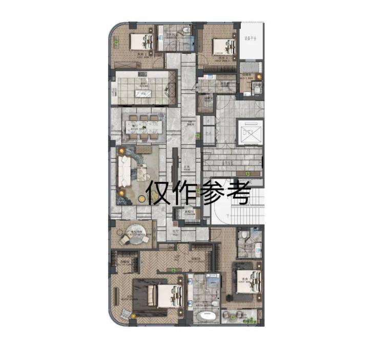 顶楼490㎡户型“一层一户”,赠送3个露台,媲美别墅空间体验。