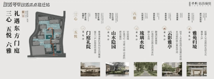 保利·姑苏瑧悦,大区设计灵感起源于《姑苏繁华图》,运用曲直、引隔、围透、藏露等造园手法,在有限空间内实现以小见大、步移景异的游园体验。将六大雅趣生活场景,植入到项目的景观设计中。以苏州古典园林造园手法,结合东方文人雅集,打造当代生活雅集。