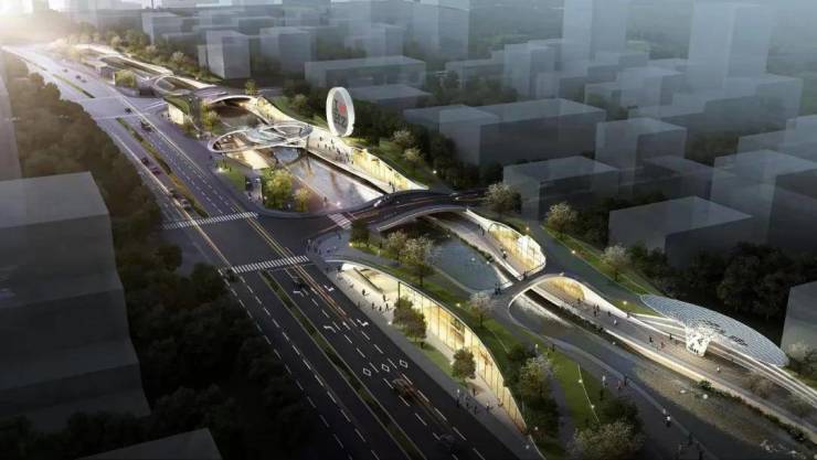 以千年海塘文化为打造特色海塘时光漫游体验;一脉御道站、五堡站、六堡站三大城市门户,打造层次分明、韵律丰富的天际线体系,构建杭州崭新封面地标群。