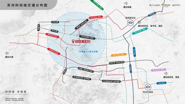 紧邻太湖大道主干道,有轨电车1号线与地铁1号线换乘,有轨电车2号线通达新区站。大阳山隧道首站)——中环西线北延,通达浒墅关,相城,园区。