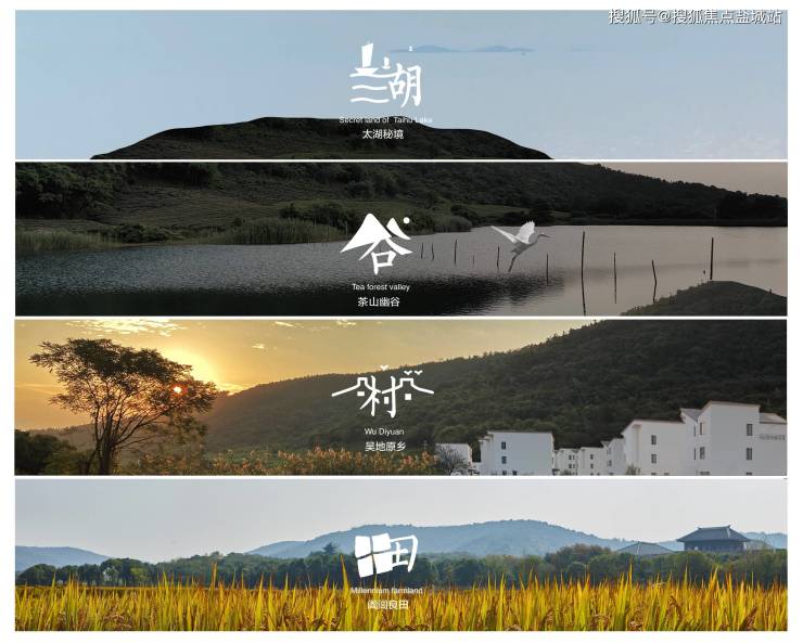小南湾占地近1500亩,包含小田蜜碳惠农园、阖闾幻城影像艺术公园、南湾艺数村和小田里懒奢度假村,依托太湖湾秘境、茶山幽谷、吴地原乡、阖闾良田,重造江南诗酒田园。