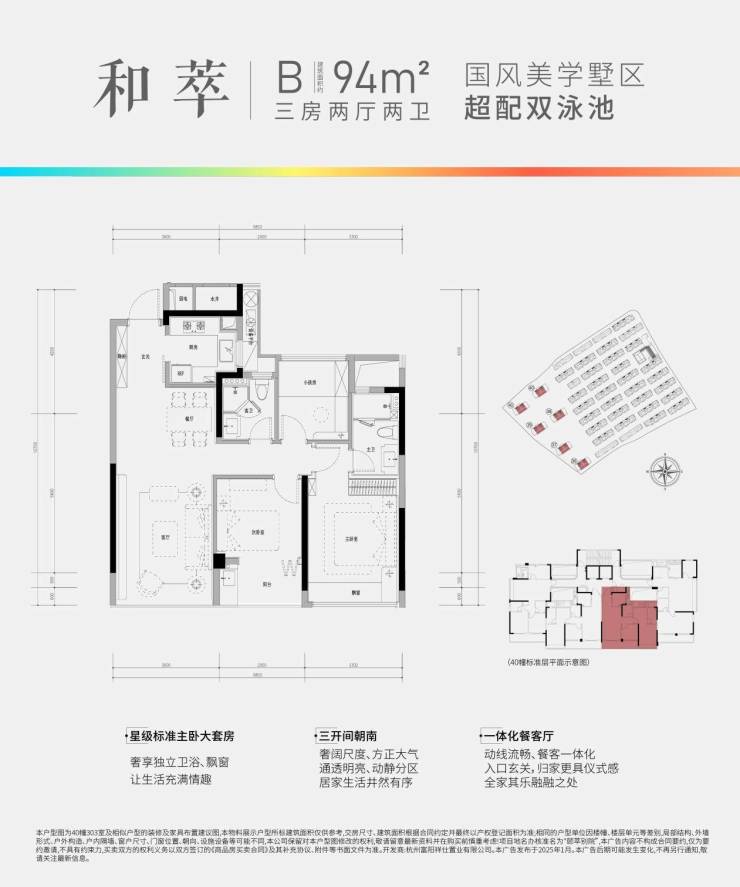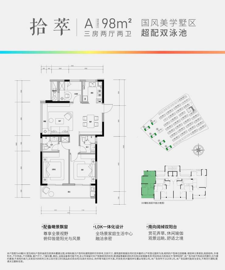 98方边套大三房、双阳台户型,产品稀缺,杭州罕见!