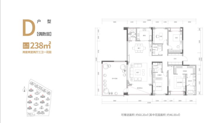 【在售面积】:小高层135-156-222m²,森林花园住宅238-296m²