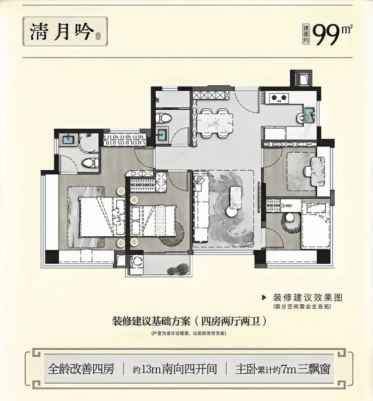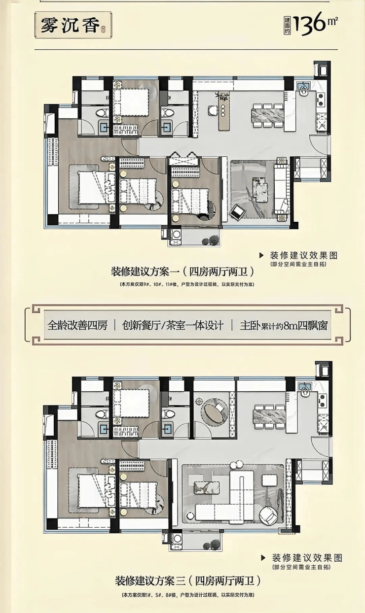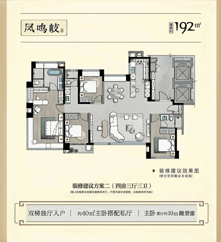 •主打99 - 192㎡四至五房的改善型户型,且首创厦门可定制交付户型;99㎡小四房,能满足二胎家庭需求;123㎡户型有14.2米南向四开间,还可定制成三房大通厅;136㎡作为主力户型可灵活调整为四房或五房;192㎡奢华大宅则面向高端客群,居住尺度优越;