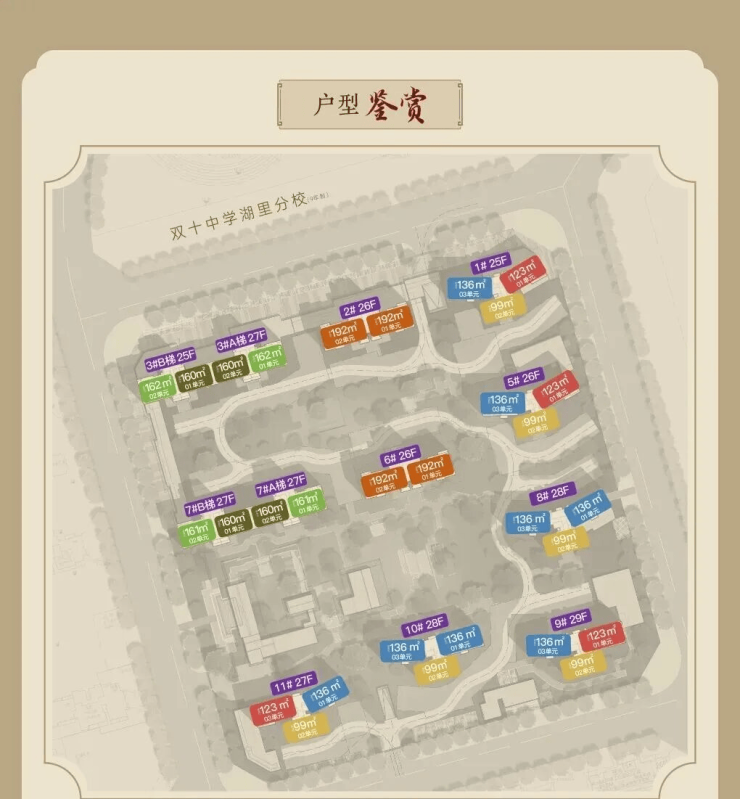 •总户数:764户,小区共规划10栋18 - 26层高层住宅,采用行列式布局;车位配比1:1.1,均为产权车位;社区内打造约2万㎡宋韵园林,还规划中央景观轴、亲子游乐区、健身步道等全龄空间;