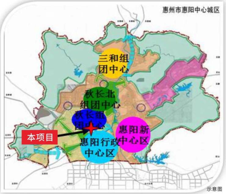 项目位于惠阳区秋长组团中心区的腹地,是惠阳居住氛围成熟的区域,可归结为“双C中心”,即CBD(中央商务区)与CCD(中央文化区)的完美组合。