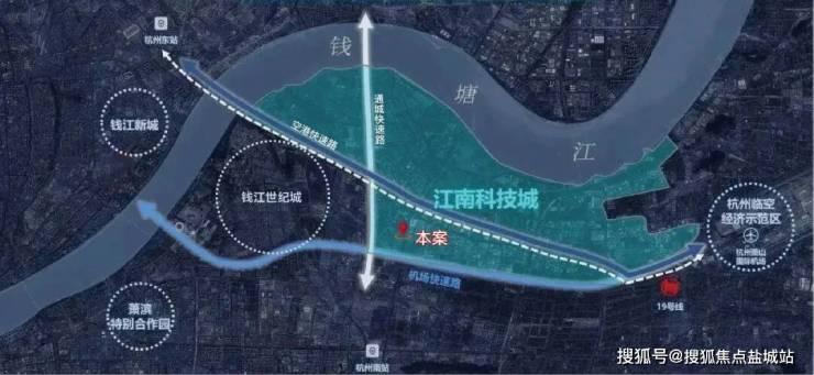 项目位于江南科技城和钱江世纪城的“双磁场之芯”,承东启西,一路之隔钱塘湾未来总部基地启动区,与杭州科创新主场深度相融,是杭州城市发展的价值先行区。