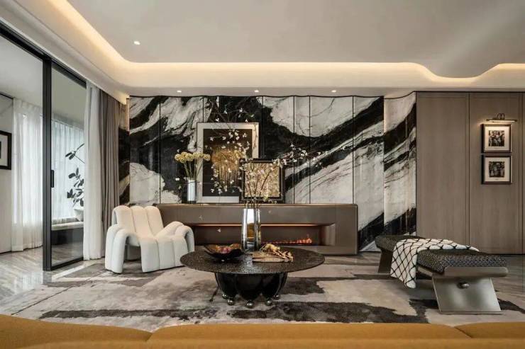 酒店级硬装标准:这种入户大堂的规格,即便在杭州顶级大平层市场都屈指可数。