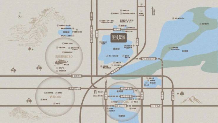 紫锦墅院临800亩纯净湖泊——盛泽湖。距园区CBD核心距离约25KM,距离高铁新城核心区约8KM。