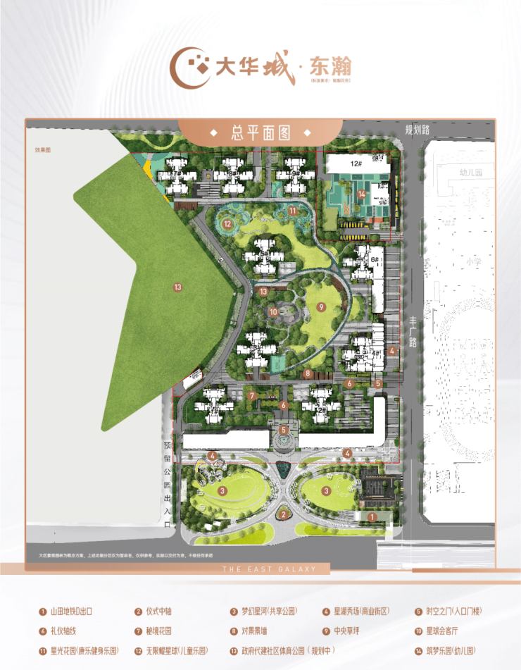 大华城——涵盖大华朱村中心城市地标(规划中)、地铁、教育、产业、商业、生态各项配套,名副其实的一生大城,未来容纳广州东约 30 万人口繁华居住地。