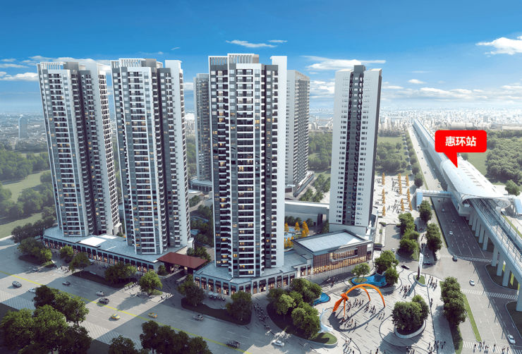 地处惠环站轻轨口,约18米瞬达,2站即达西湖,3站即达东莞,10分钟即享莞惠城市繁华,30分钟连接深莞惠三城。轻轨口TOD,坐拥臻稀资产。