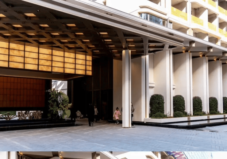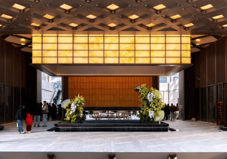 项目邀请知名团队设计,入口大门借鉴了伦敦梅费尔瑰丽酒店的风格,打造了约60米长的瑰丽门庭,这尺度,光看着就感觉气派非凡,归家的仪式感拉满。