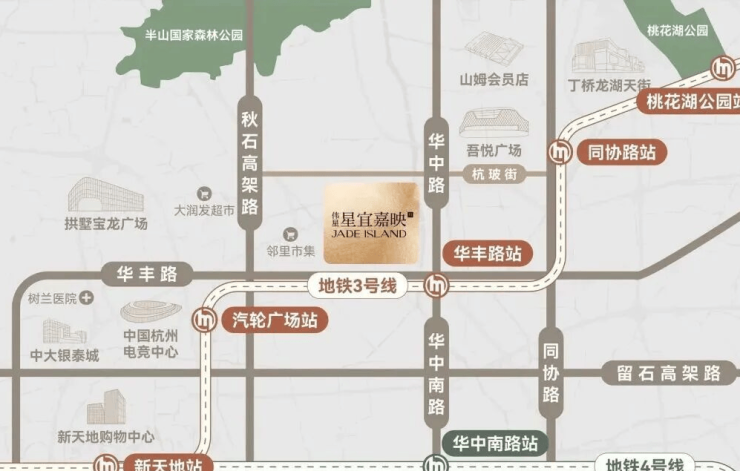 项目距离地铁3号线华丰站仅约190米,是名副其实的“地铁盘”,2站即可达新天地,8站可达武林广场,高效连通杭州核心商圈。