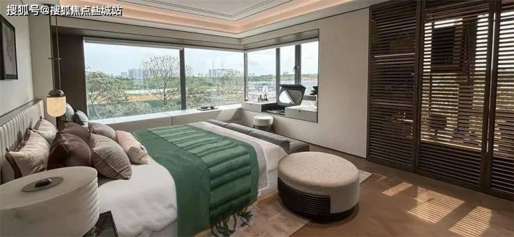 “大窗户”,在南向主卧里,拥有270°环幕瞰景玻璃窗,飘窗实现功能化,可以设置为观景台、品茶区,拥有超广角观景体验。醒来的第一眼,看到的可能就是对面那颗冬青树上的小鸟飞舞,真正诠释坐看窗边云卷云舒,闲看庭前花开花落。