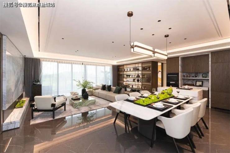 “大客厅”彰显主人家的气度,LDBK一体化的餐客厅设计,延续大尺度调性,打破传统空间的界限,让餐厅、客厅和厨房相互融合,形成一个开阔且流畅的超聚厅。“兴家客自多”,即使是人多的家庭聚会日,在这个客厅上也能各得一方天地。