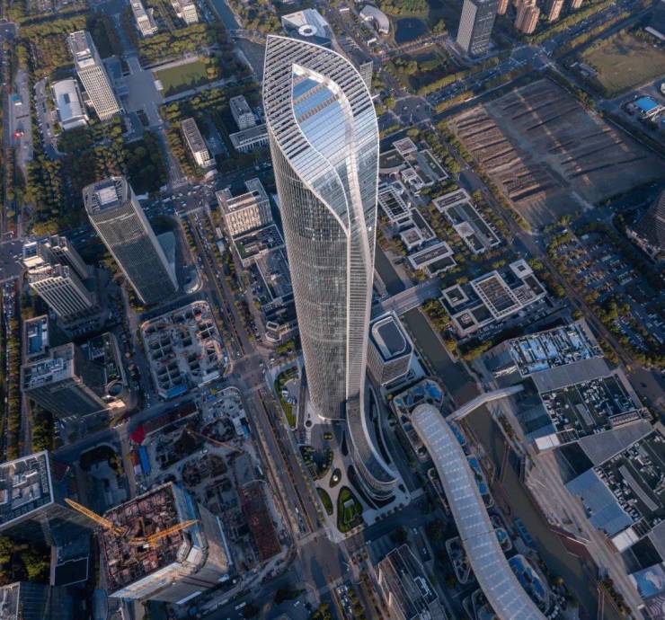 苏州国际金融中心高450米,是定义苏州城市天际线的地标。形态设计灵感源自鱼——在中国传统文化中,鱼是兴旺繁荣的象征。这一形象很适合这座苏州最高的地标建筑。