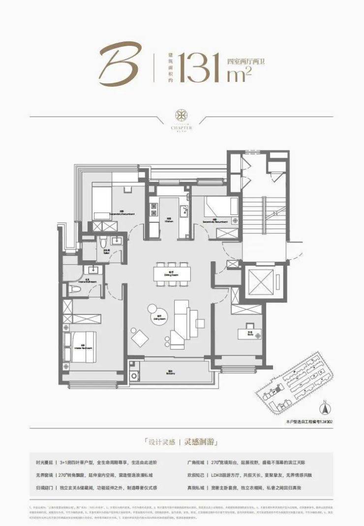 再是建面约131㎡的四房两厅两卫产品。