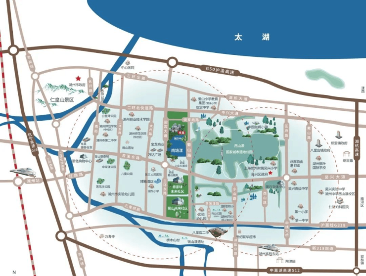 【无忧书香学府】:幼儿园、湖师附小(西山漾校区)、湖州四中(西山漾校区)、安定中学等优质教育资源环伺,起航学子未来。