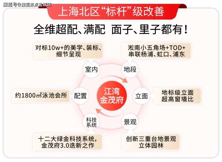 江湾金茂府远不止大家熟知的科技系统,而是 全方位满配、超配 ,为北上海客户带来一次 人无我有的标杆 级 改善,我认为它的产品力可 对标10万+新盘 ,所以首开均价6.95万/㎡真的诚意满满。