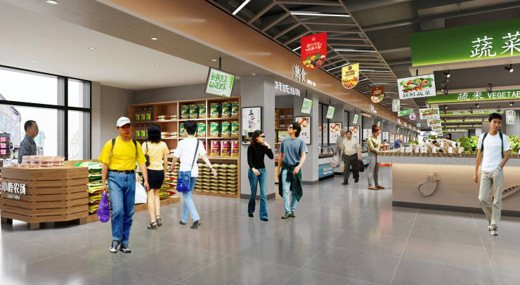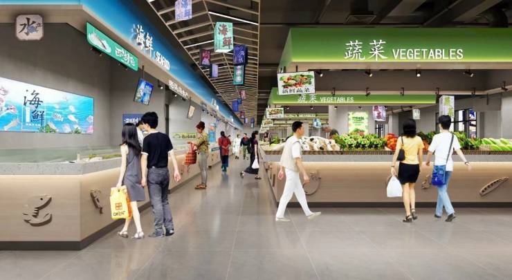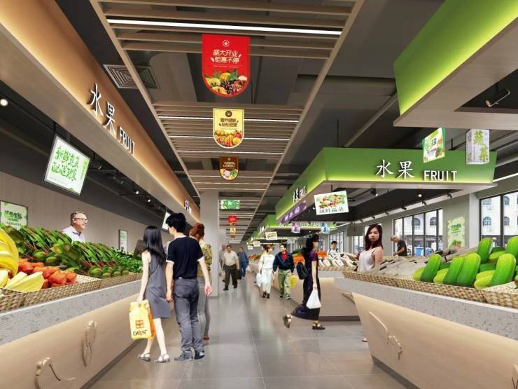项目内部全部实现精装修交付,采用星级农贸装修标准,告别了传统农贸市场的脏乱差的形象;项目配备了中央空调,无论是在里面做生意的还是过来买菜消费的,室内环境冬暖夏凉;同时运用新风系统,减少农贸市场异味,更进一步减少了菜品的损坏。