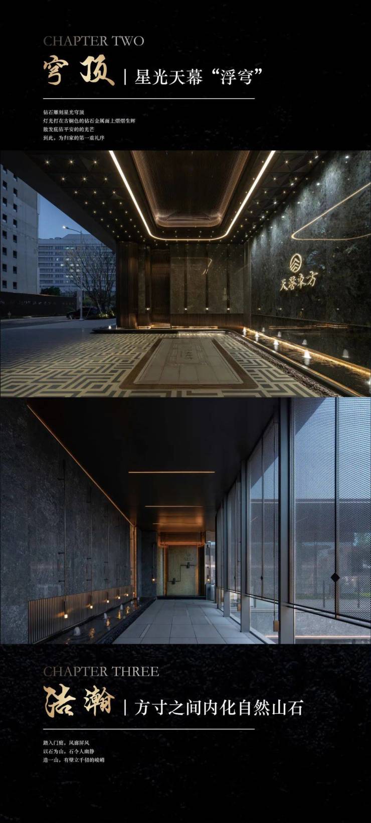 穹顶奢石,高门阔府,臻选蓝翡翠进口奢石、钻石星光穹顶,3D璀璨天幕,高定万字纹仿古铜地刻。恢弘门庭,孤珍用材,尽显豪宅奢华。