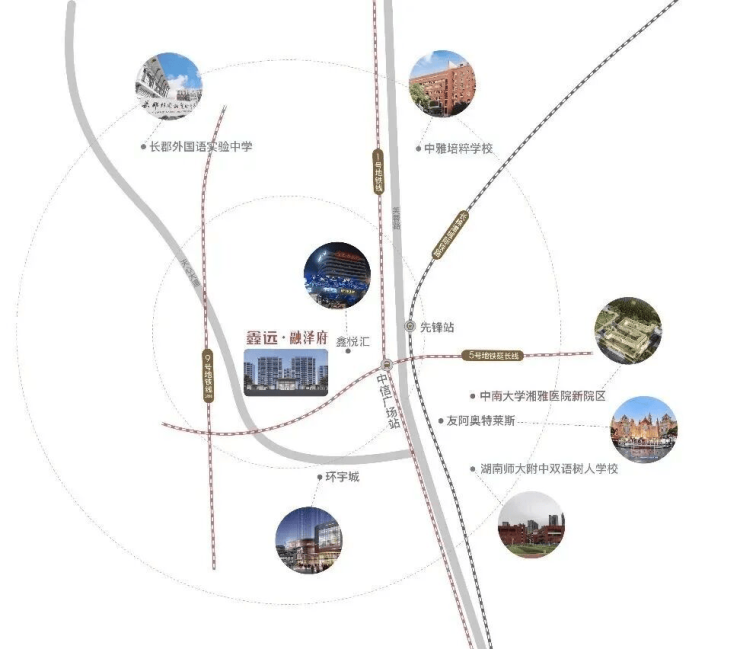 🚉四轨互联:距1号线和5号线(延长线)中信广场站约200米、规划9号线、长株潭城际轨道,四轨互联繁华图景。