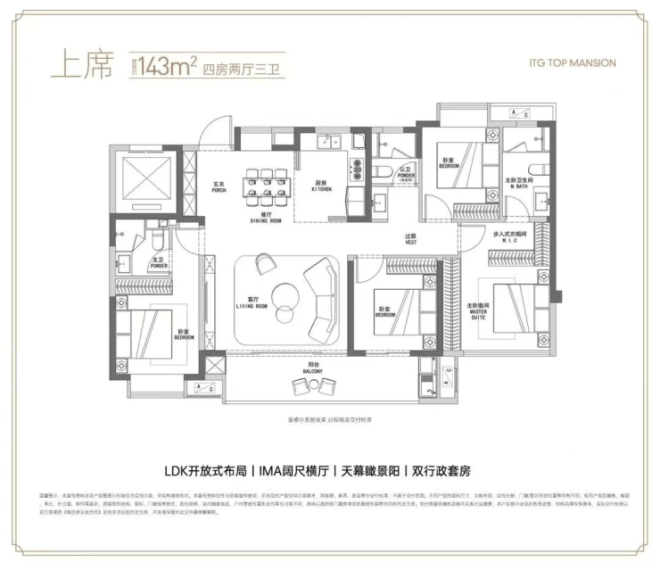 4、项目主推户型为建面约107-143㎡的三至四房,户型方正、空间朗阔,兼具功能性与舒适性。