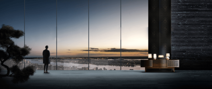 全景IMAX环绕无遮挡江景,最大约25米观景面,巨幕式视野一线无遮挡。约3.8米超高层高,驻足于全景落地窗前, 让每一寸空间里江、海、园、城四重景观映于眼帘。
