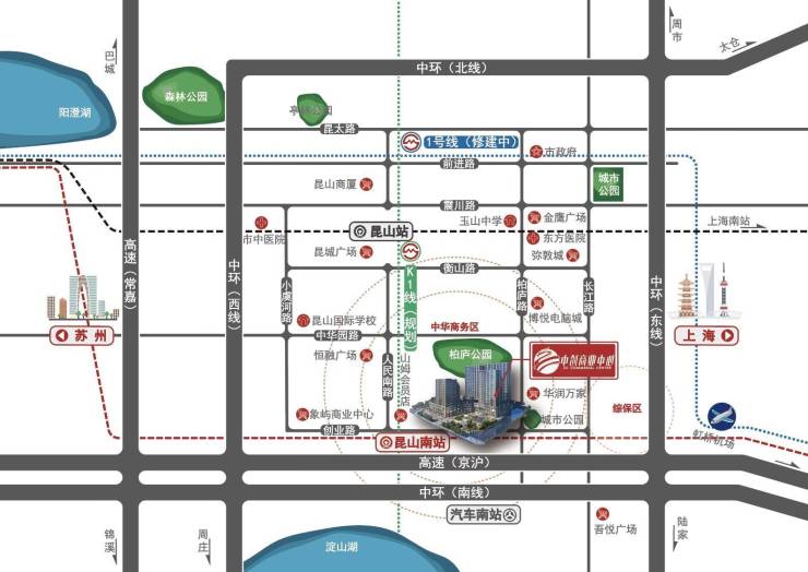 昆山中华商务区核心区域,高档居住区核心,昆山门户