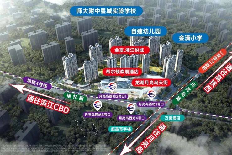 地理位置:长沙市望城区月亮岛路与银杉路交汇处,紧邻地铁4号线“月亮岛西”站,地下车库与地铁站无缝接驳。