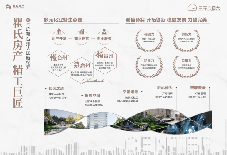 深度契合当代人居需求,构建“宜居、宜学”的美好住区,诠释生活的品味与优雅,筑就台州峯层居住范本。