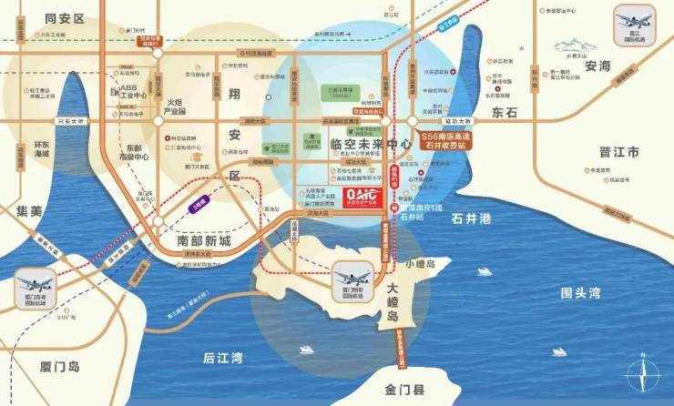 【1小时通勤泉厦双主城】:项目距离厦门翔安机场约5公里,距石井西高速入口约5公里,距R1线石井站约200米,距厦门大学翔安校区约10公里,约40分钟畅达厦门本岛及泉州主城区,交通位置优越;