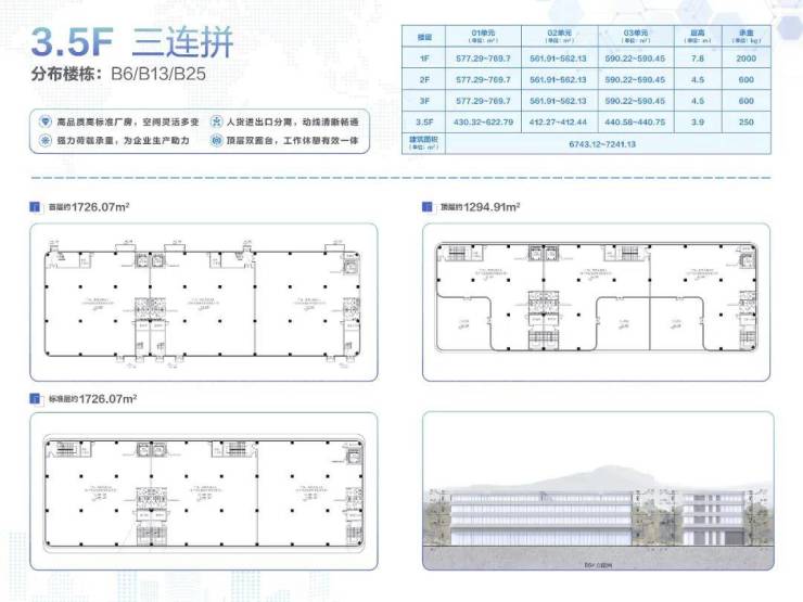 1⃣3.5F分栋厂房首层层高:7.8m、二三层:4.5m、四层:3.9m;
