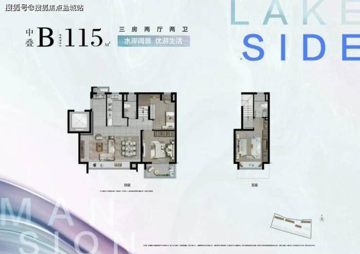 约115㎡3房2厅2卫中叠B户型▼