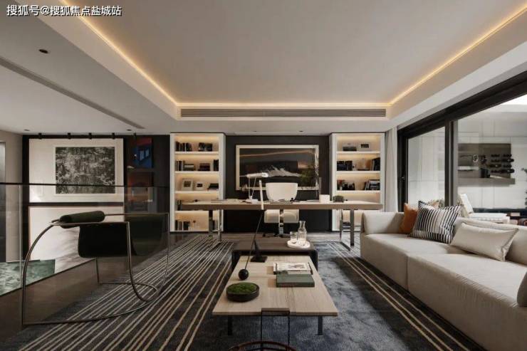 下叠“旗枪”户型,带来的则是另一番更有“墅感”的空间惊喜。月陇云岚的下叠户型,都带有两重院落。一重是地面归家入口,业主可以穿越一个草木葱郁的花园,带着美好而放松的心情,直接进入客厅。