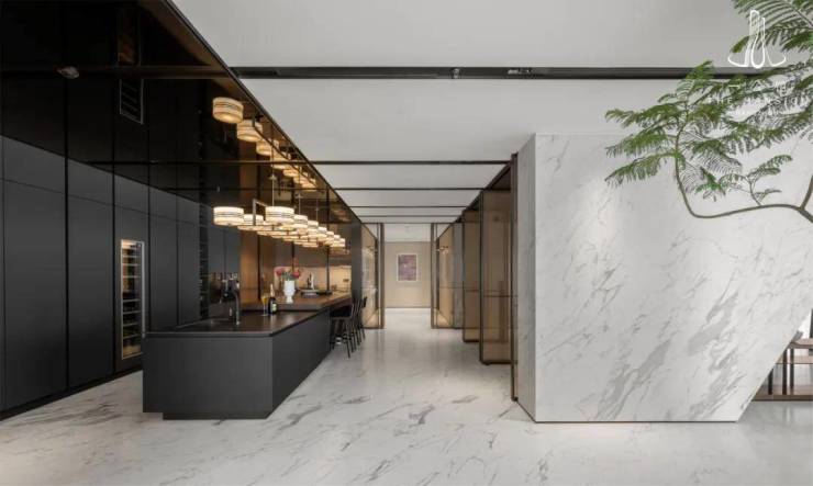 基于人与空间的互动,以及对品味生活的追求、对精神与“唯一性”的重视,通过公区的整体化布局和功能的多元化考量,投射出情境构建下的专属生活方式。商务接待、居家会客、宾客宴请......场景需求融入空间规划,在每个相对独立的体块之间建立出新的关系,又通过空间形态的衍化与连接,蔓延出相互共存的生活场景。