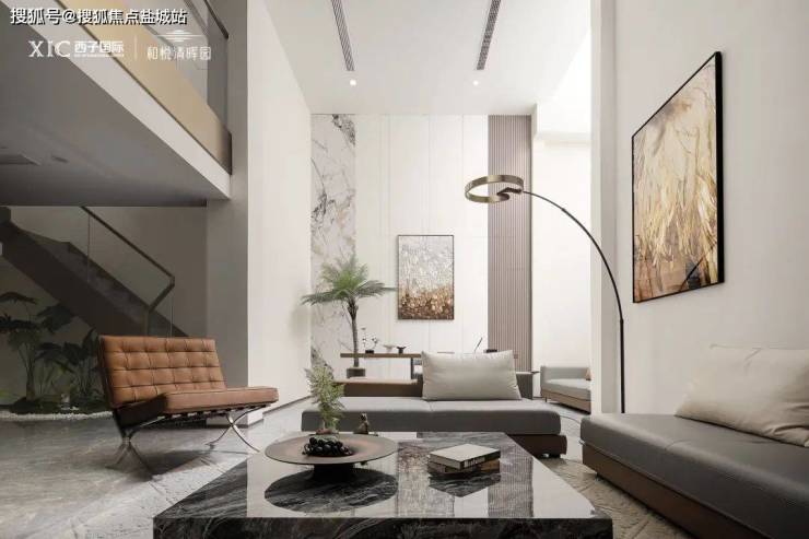 190㎡叠墅上下两层之间动静分区,长者与年轻一代可分层居住,同时也能让待客等公共空间和隐私休憩空间做到完全分离,居住的私谧性与奢适度层层叠加。