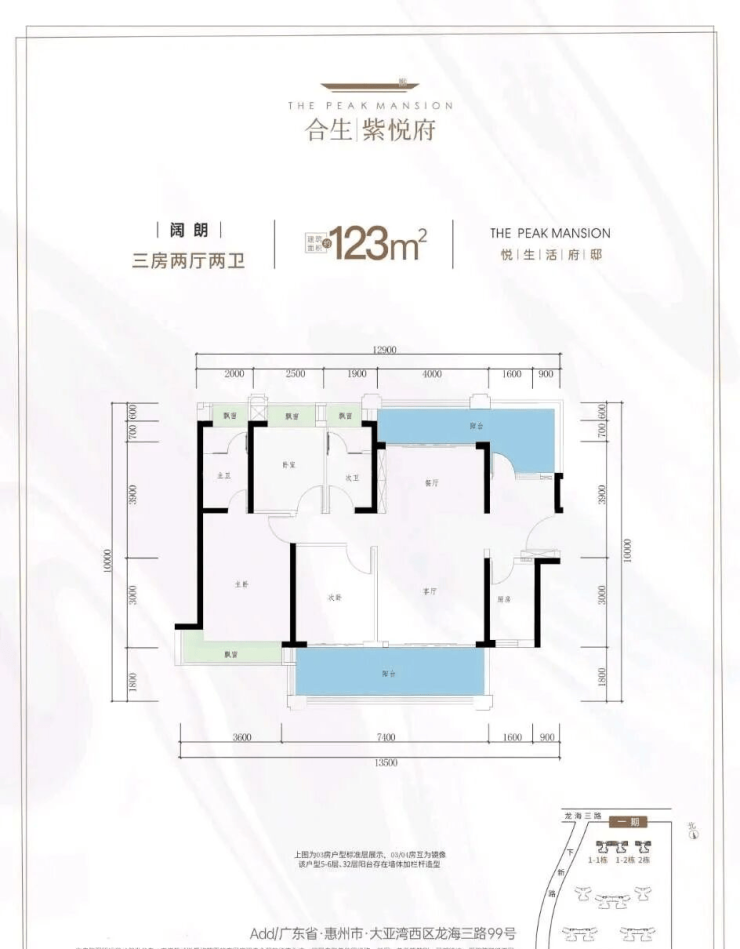 项目简介;合生紫悦府位于大亚湾龙海三路,距离深圳约3.5公里,项目分两期开发;多维交通,深惠双城同程;商学园环伺,都会主场;五重现代意境园林;十大全龄生活场;约50万㎡精著社区;自带幼儿园及小学;两梯四户全南向设计;约79米宽楼间距;高拓户型宽尺度生活。致力于打造人居范本。