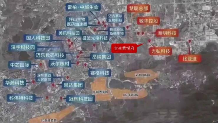 项目区位距离坪山约3.5公里,位于深圳向东发展的第一梯队,承接粤港澳大湾区、深1.4万亿东进红利,坐拥坪山高新产业区、大亚湾高新产业区双千亿产业,目前项目周边2公里范围内已落户慧聪总部、洲明科技等百亿级项目,未来人才集聚,有极大的发展空间。