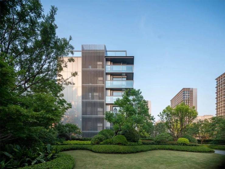 所以在黄浦江边,相比其他充满压迫感的“兵列式”高层,你会被它“飞鸟与群山”般的双层天际线温柔吸引:高层像缓山一样谦和地退于后排,洋房则如群鸟贴地盘旋。