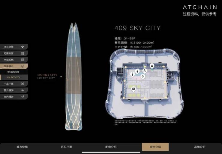 31-59F:单层面积约3100-3400平方米,分4个产权证,主力面积为 720-1000平方米,增加了烟道和给排水配置,毛坏交付,增加了私属打造空间。