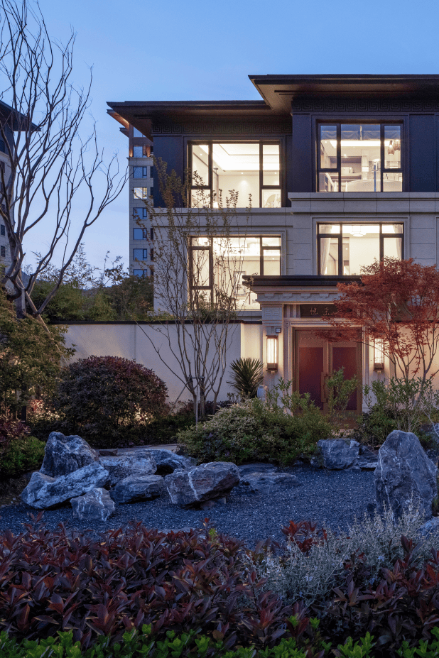 亭台,天地,山水,是庭园的风骨,也是建筑的气度。源发于中式园林的思想回归,一如鲁迅笔下的“百草园”般园林入宅。悦湖湾花园借景造园,结合现代园林设计手法,于屋围庭合间,纳园入宅,构筑怡人怡景的水木清华自然景观,将明月松间造的雅致、绿植生命力的繁茂纳入其中,在规矩、整体与稳重之间,于制衡的形制和庄雅的意境贯穿,尽显东方传统园林文化和美学修养。一墙围合,纳尽四季风雅之事,中国传统文化中“天、地、人”三界空间,在此得到体现。