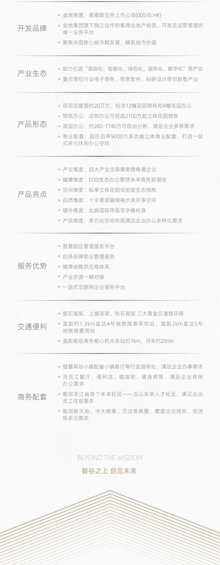 金地威新大厦,站位拱墅城北核心区位,打造智谷之上的数字生活先行区,以总部级自持高层楼宇、6,000m²中央花园、约9,000㎡商务配套,引领商务办公新时代。
