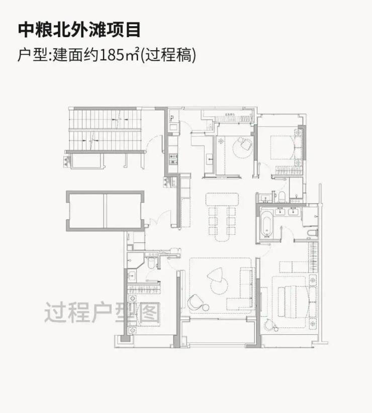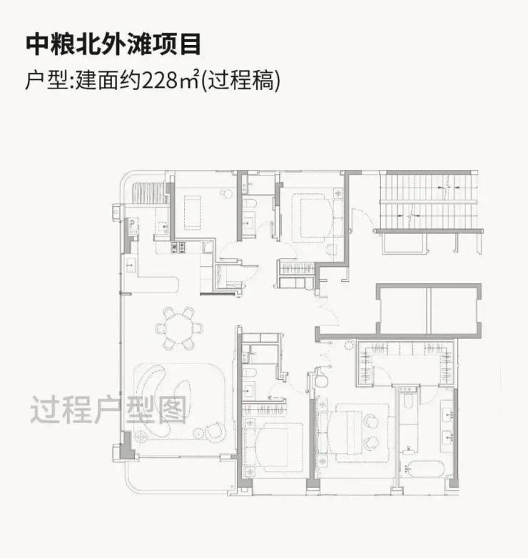 中粮·北外滩壹号 即将入市的高层户型建面约185-228㎡纯粹4房,尺度感相当奢阔!高层户型均为两梯两户独立电梯厅配置,隐私性与尊崇感拉满!