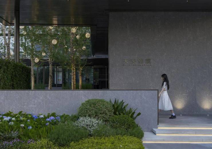 天泱雅筑园内的所有“度假小园”并非简单堆砌,而是以严谨的美学秩序进行有序铺排,让不同主题的景观节点自然“散落”开来,给人以虽由人作、宛若天成的视觉体验。