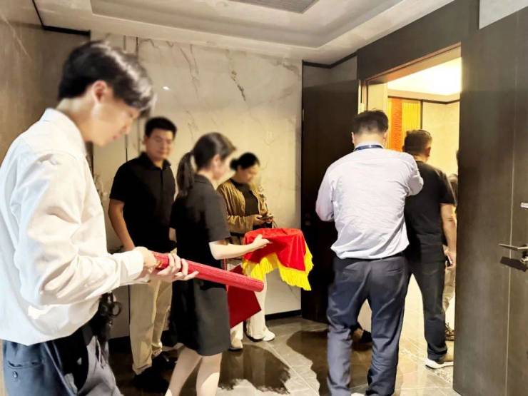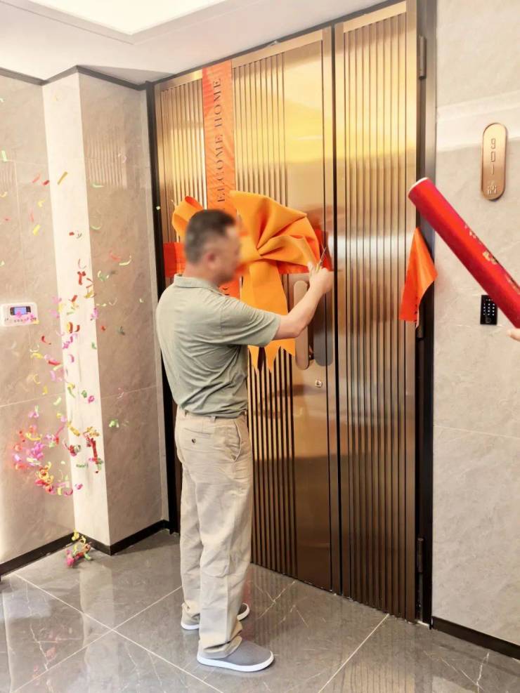 开门环节,门封剪彩的瞬间,快门声此起彼伏,记录下这个重要时刻。业主执剪,礼花四溅,现场洋溢着幸福与期待。每一个环节都经过精心设计,却又保持着自然的节奏,仪式感与温情并重,让交付不再是冰冷的手续,而是温暖的开始。
