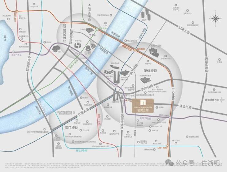 周边大小“莲花碗”、T - ONEMO(在建)、奥体中心、奥体印象城、滨江银泰城、杭州 SKP(在建)等地标建筑星罗棋布,构建起一个资源高度聚集的城市封面区域。同时,项目往西约200米便是重要交通干道风情大道,依托三横两纵的便捷路网,能够快速通达滨江区政府、万象城、来福士、市民中心等城市关键节点,交通优势显著。在建筑规划上,香港华艺设计,将“修竹与叠石”的东方审美精粹与世界前沿美学的大幅玻璃幕墙完美融合。垂直向上挺拔建筑线条、流光熠熠的瀑布曲面屏立面、多维联接的开放式商业裙楼,让项目在矜贵美学外,拥有广袤的文化纵深感。在居住品质打造方面,揽奥云璟精心打造全维配置的高端会所。会所内设有云跃健身房、云柔瑜伽馆、云趣童梦园、云璟会客厅、云栖私享厅、云弈棋牌室、云沁品茗室、云逸酒廊等高定云端八境。